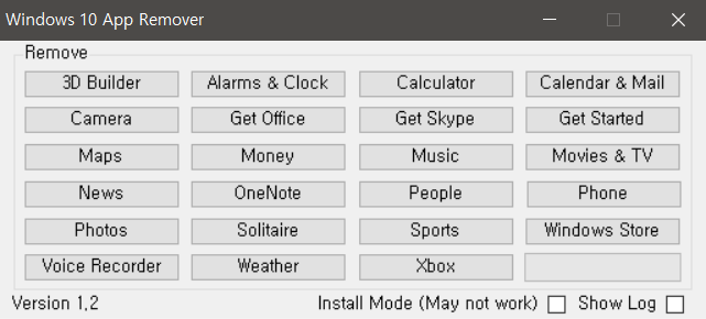 윈도우10의 기본적으로 설치되어 있는 앱들을 제거해주는 프로그램이다.